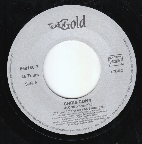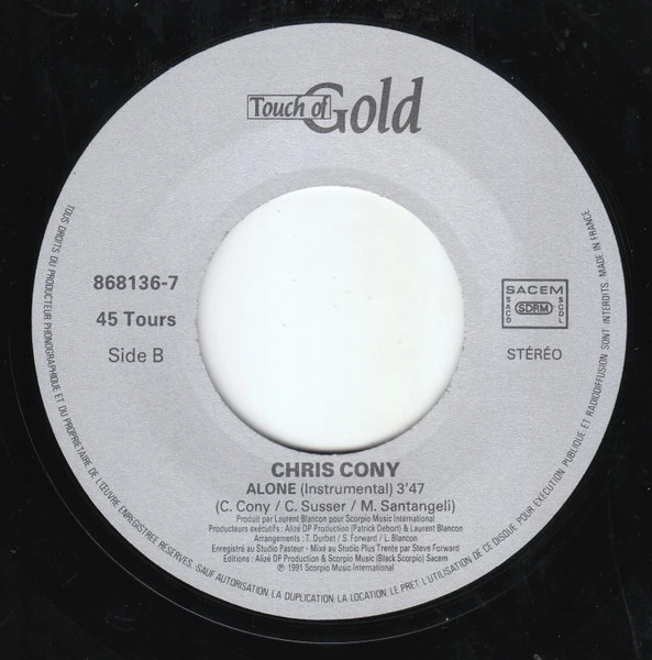 Alone (formerly known as Tonight Alone or I’m Alone) is a formerly unidentified Italodisco/pop rock song by French musician Chris Cony, released in 1991 as a maxi-single with a club mix and instrumental version.