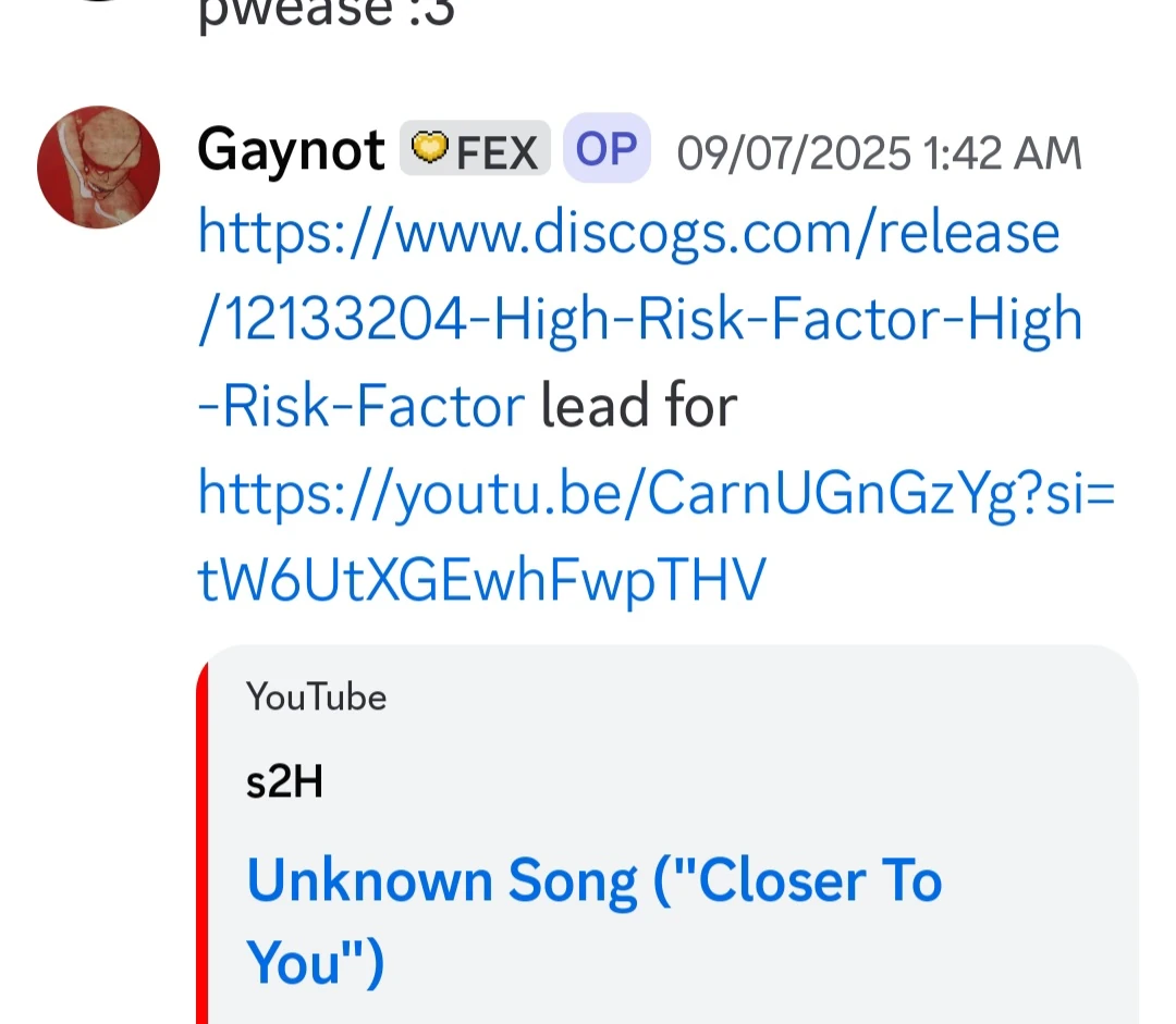 On September 4th, 2025, Discord user Hinoyt would find a Discogs listing for "Closer To You" by High Risk Factor. Hinoyt would then contact a seller.[1]