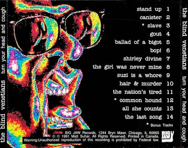 In 1991, they released their first album, "Turn Your Head And Cough", which was available on both cassette and CD, features Matt Sjezda on guitar and vocals, and contains this song and thirteen others:
