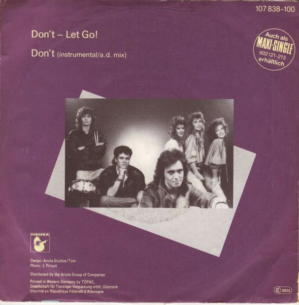 Don't - Let Go! (formerly known as Let's Go) is a formerly unidentified disco song by German band The Koola News, released in 1986 as a single.