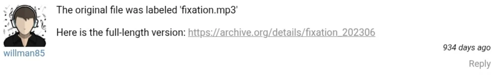 A day later, the OP posted the full song to Internet Archive[1]. In the comment, they said the original filename was “Fixation.mp3”.[2]
