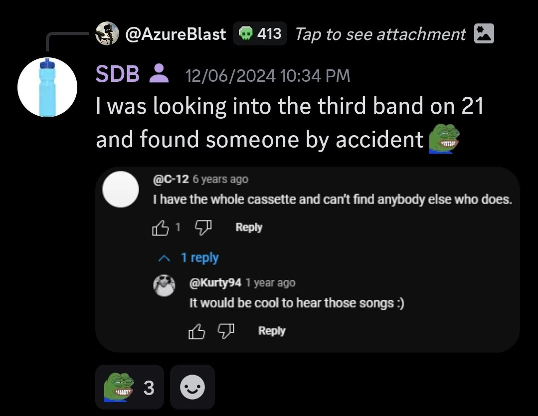 On March 26th, 2023, Guglielm confirmed that he digitized all of his cassette tapes with the songs on them in the early 1990s, and no longer had any of them anymore.[3]