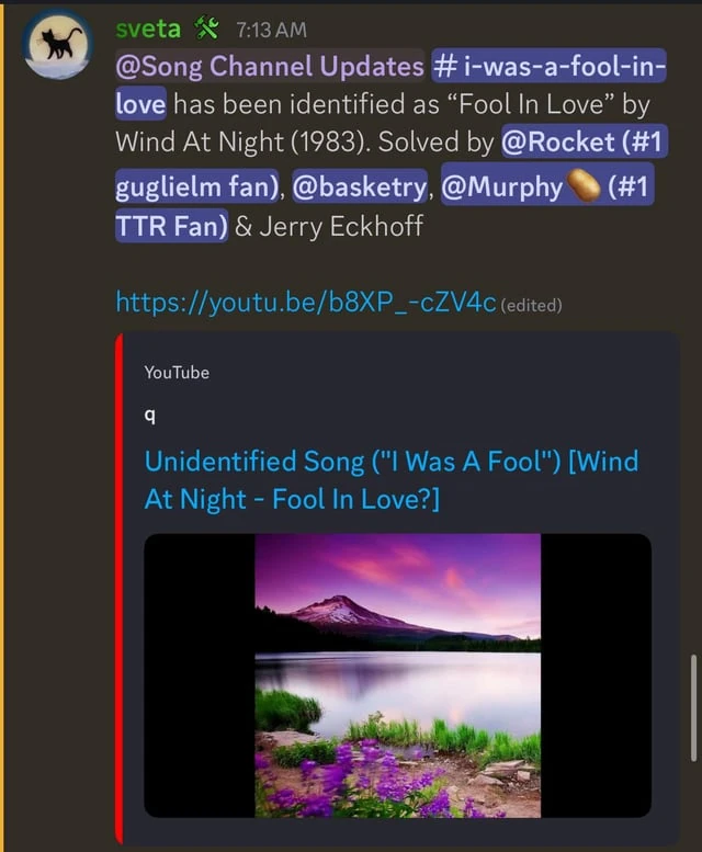 On August 1st, 2025, Basketry got a response that the song was indeed by Wind At Night, titled "Fool in Love" recorded in 1983, but HQ audio or proof would be needed to mark it as solved.[5]