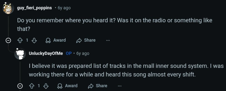 In response to user guy_fieri_poppins asking where the song came from, Unlucky said that it was likely put into a prepared track list made for a mall's inner sound system.[3]
