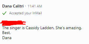 On July 24th, 2024, the song was identified by user Discord Funado as Frozen by Cassidy Ladden after he contacted writer and lyricist Dana Calitri.[8]