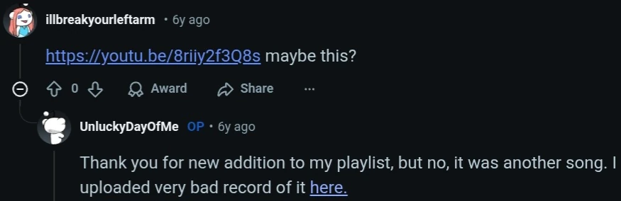 On July 3rd, 2020, the song was posted to the r/tipofmytongue subreddit by user UnluckyDayOfMe. The post read: