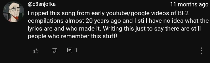 On October 26th, 2024, 10 days after Q reuploaded the song. User c3snjofka commented on Ezekiel’s video said that they downloaded the song from YouTube or Google Videos “almost 20 years ago”, but they also didn’t know who made it.[5]