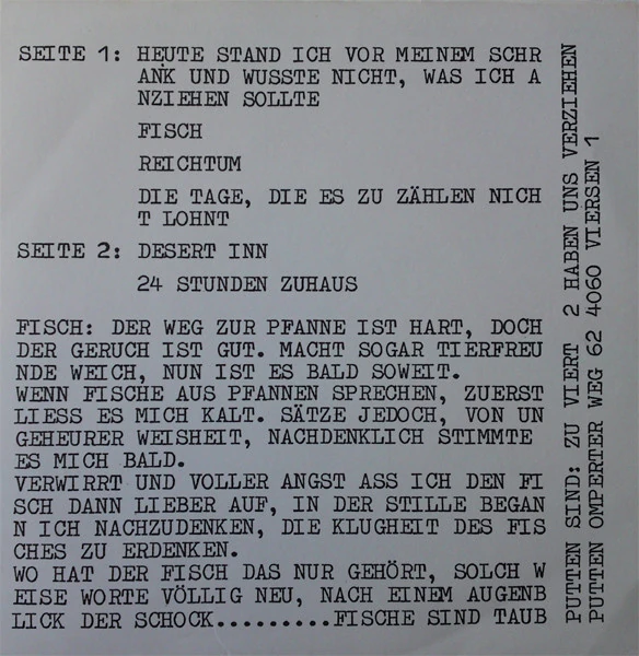 Heute Stand Ich Vor Meinem Schrank Und Wusste Nicht, Was Ich Anziehen Sollte (English: Today I Was Standing In Front Of My Closet And Didn't Know What To Wear) (formerly known as Aaargh!) is a formerly unidentified German Punk song by German band Putten, released in 1989 on the EP Entschuldigung (Excuse Me).