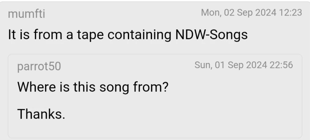 On September 2nd, 2024, the OP came back and said the song came from a cassette tape that contained multiple other NDW/new wave songs, but this is the only one that's still unidentified.[1]
