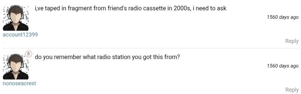 On June 20th, when user Nonoseacrest asked which radio station they recorded it from, the OP said their friend owned the casette, and they recorded it from that cassette.[2]