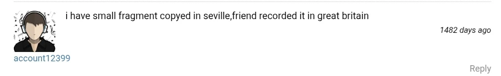 I am not in any way related to the poster of this sample nor the one you linked. Maybe it is a friend of a friend of mine. Nonetheless I have never heard that other track."[8]