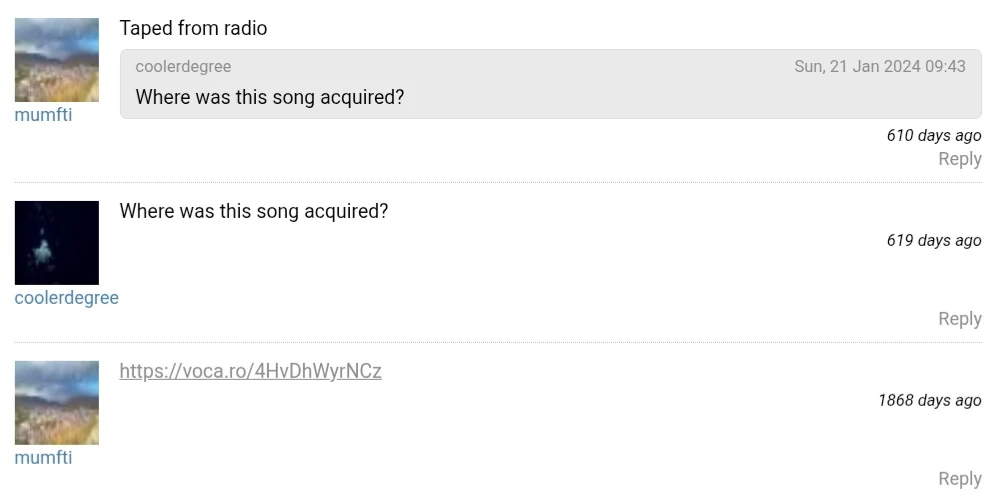On January 30th, 2024, the OP came back again and said they taped the song off of an unknown radio station[1]. Due to the origins of other songs they posted, the station was most likely German.