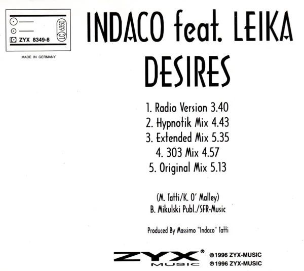 Desires (Extended Mix) (formerly known as Digital Speed) is a formerly unidentified Euro House song made by German artists Indaco and Leika, released in 1996 as a single.