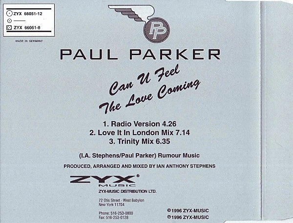 Can U Feel The Love Coming (Trinity Mix) (formerly known as yes21) is a formerly unidentified Hi NRG Eurodance song by American singer Paul Parker, released in 1997 as a single.