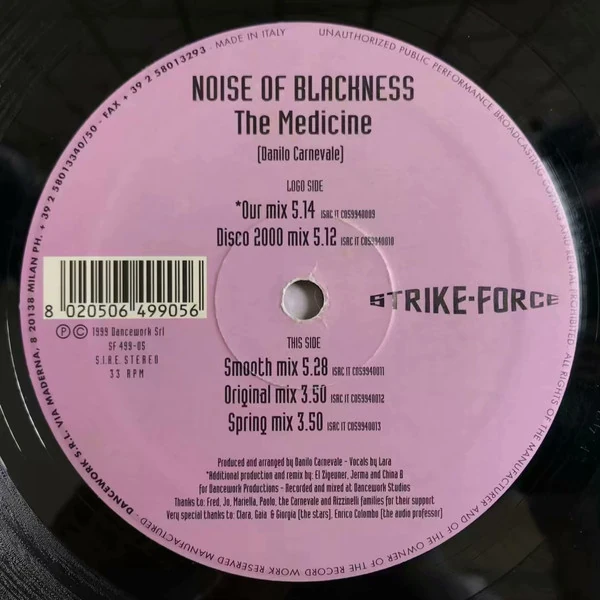 The Medicine (Our Mix) (previously known as Chemistry) is a formerly unidentified Euro house/italodance song by Italian producer Noise of Blackness (Danilo Carnevale). It was released in 1999 as a single.