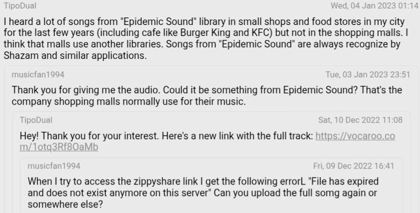 On January 4th, 2023, after musicfan1994 brought up the possibility of the song being provided by Epidemic Sound, TipoDual said: