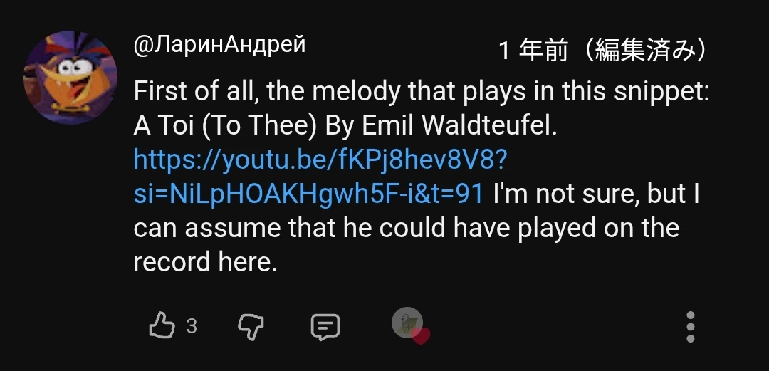 Presumably in 2018, user Никита Морозов assumed the piano player might be Moritz Moszkowski. Another user thought it could be Clara Schumann.[3]
