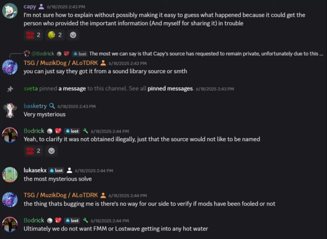 On June 18th, 2025, the song was identified by Discord user capy as Weird by Paul Rosevear after they contacted the production company that made the show, and asked if they had records of the music that played in the episode, they sent the record, and it included the song.[1]