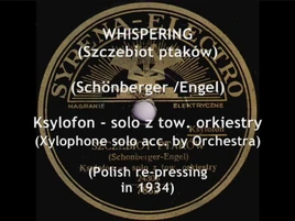 "Whispering ( Szczebiot ptaków) Fokstrot (Schönberger /Engel) - Ksylofon solo z tow. orkiestry (Xylophone solo acc. by Orchestra), Syrena-Electro, 1934 (Polish re-pressing)"[2]
